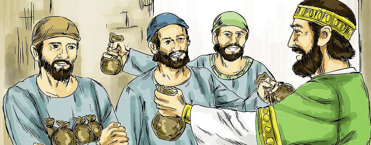 En ce temps-là, Jésus disait à ses disciples cette parabole : « C’est comme un homme qui partait en voyage : il appela ses serviteurs et leur confia ses biens. À l’un il remit une somme de cinq talents, à un autre deux talents, au troisième un seul talent, à chacun selon ses capacités. Puis il partit. Aussitôt, celui qui avait reçu les cinq talents s’en alla pour les faire valoir et en gagna cinq autres. De même, celui qui avait reçu deux talents en gagna deux autres. Mais celui qui n’en avait reçu qu’un alla creuser la terre et cacha l’argent de son maître. Longtemps après, le maître de ces serviteurs revint et il leur demanda des comptes. Celui qui avait reçu cinq talents s’approcha, présenta cinq autres talents et dit : ‘Seigneur, tu m’as confié cinq talents ; voilà, j’en ai gagné cinq autres.’ Son maître lui déclara : ‘Très bien, serviteur bon et fidèle, tu as été fidèle pour peu de choses, je t’en confierai beaucoup ; entre dans la joie de ton seigneur.’ Celui qui avait reçu deux talents s’approcha aussi et dit : ‘Seigneur, tu m’as confié deux talents ; voilà, j’en ai gagné deux autres.’ Son maître lui déclara : ‘Très bien, serviteur bon et fidèle, tu as été fidèle pour peu de choses, je t’en confierai beaucoup ; entre dans la joie de ton seigneur.’ Celui qui avait reçu un seul talent s’approcha aussi et dit : ‘Seigneur, je savais que tu es un homme dur : tu moissonnes là où tu n’as pas semé, tu ramasses là où tu n’as pas répandu le grain. J’ai eu peur, et je suis allé cacher ton talent dans la terre. Le voici. Tu as ce qui t’appartient.’ Son maître lui répliqua : ‘Serviteur mauvais et paresseux, tu savais que je moissonne là où je n’ai pas semé, que je ramasse le grain là où je ne l’ai pas répandu. Alors, il fallait placer mon argent à la banque ; et, à mon retour, je l’aurais retrouvé avec les intérêts. Enlevez-lui donc son talent et donnez-le à celui qui en a dix. À celui qui a, on donnera encore, et il sera dans l’abondance ; mais celui qui n’a rien se verra enlever même ce qu’il a. Quant à ce serviteur bon à rien, jetez-le dans les ténèbres extérieures ; là, il y aura des pleurs et des grincements de dents !’ » – Acclamons la Parole de Dieu.