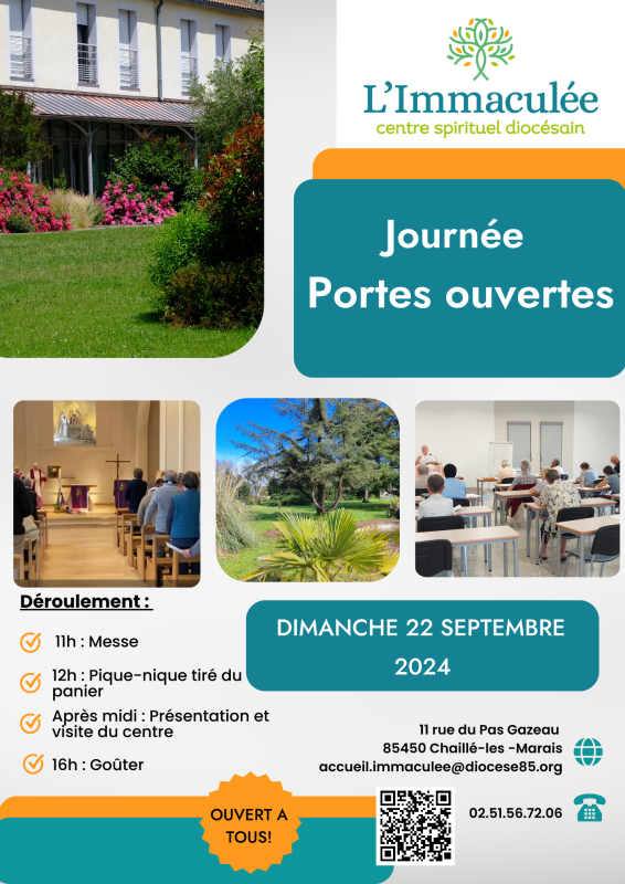 Le centre spirituel L’Immaculée a le plaisir de vous inviter à une journée « portes ouvertes ». Convivialité, visites, animations, temps spirituels… (repas tiré du panier).